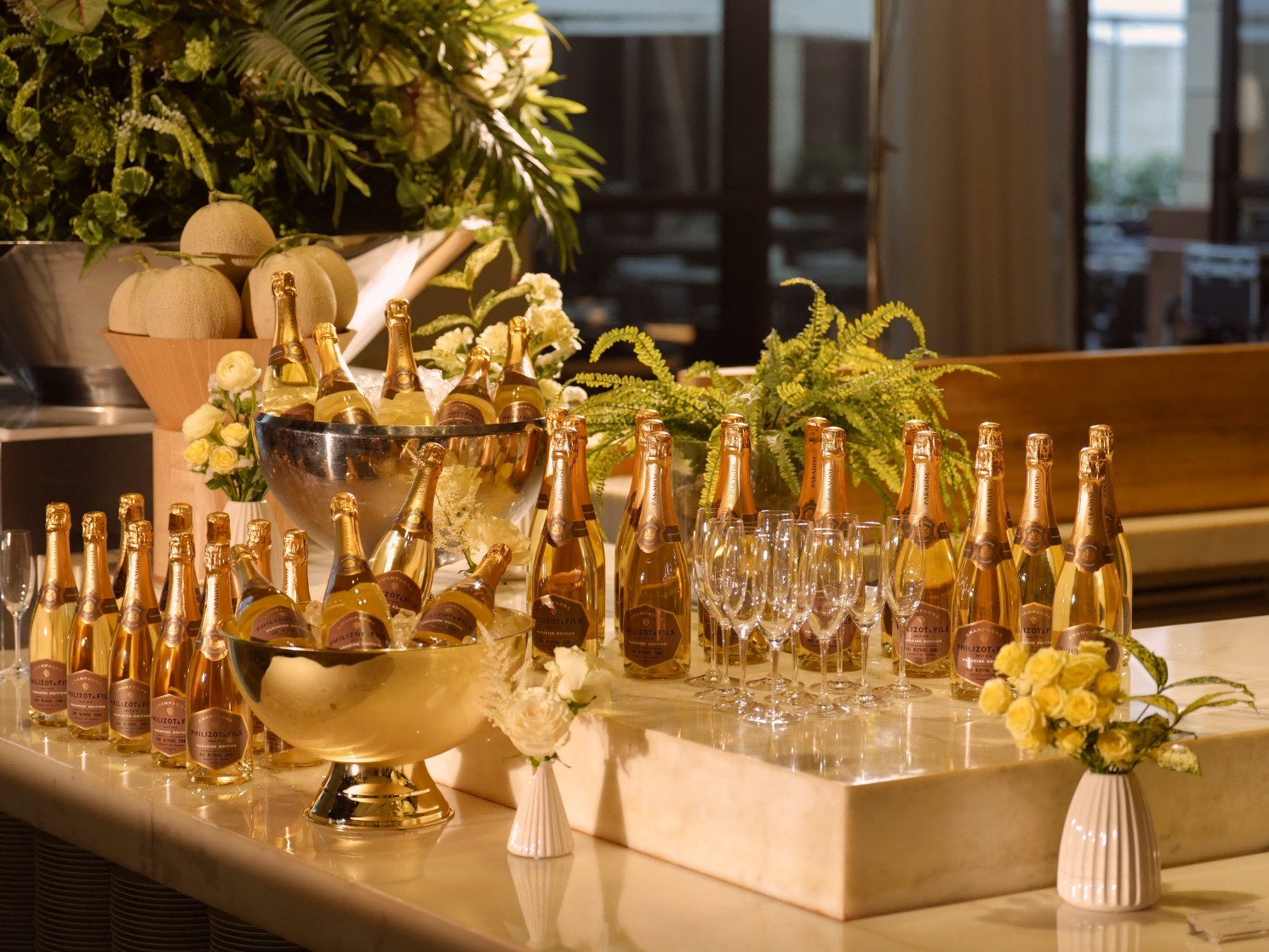 高级自助餐厅”佳肴无间”将提供顶级香槟及红、白葡萄酒无限畅饮服务直到4月30日。主打酒款“Phillizot et Fils Numero 8Paradise Edition”是青龙电影奖、百想艺术大赏等韩国顶级颁奖典礼的官方指定香槟,为宾客的美食之旅增添金色高光时刻。